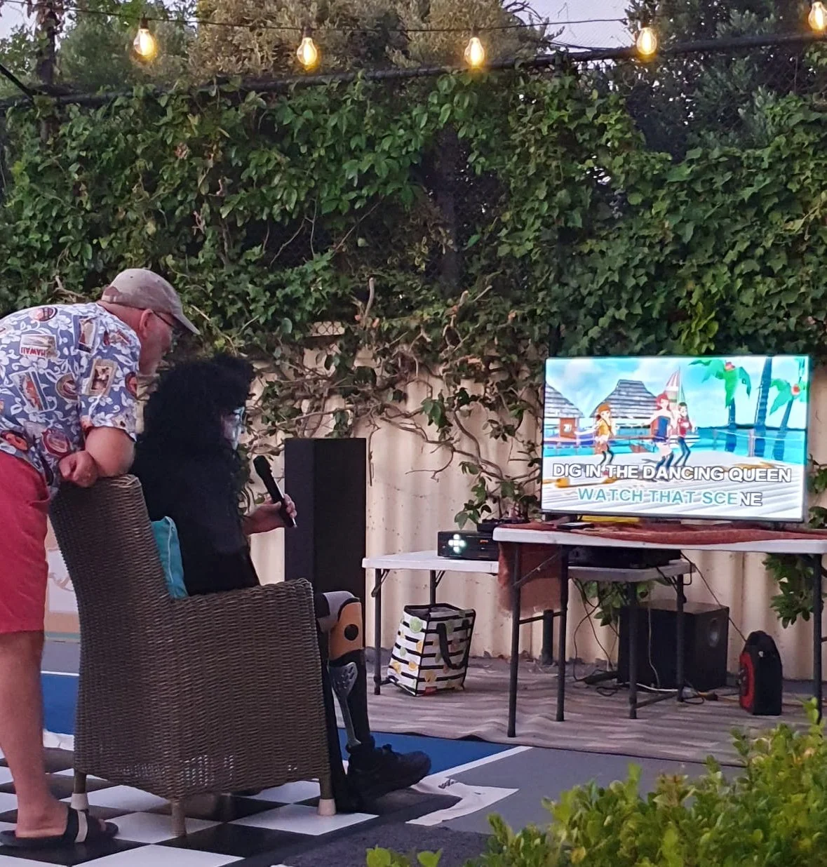 At the end of the night, I did karaoke of my usual song, 'I Was Made for Loving You.' Mike was singing behind me. When I finished, I got a lot of applause. They all clapped for me. There was about 35 people there, all my friends. Lots of family, lots of friends. Including my friends from bowling. I couldn't see them all, there were so many.